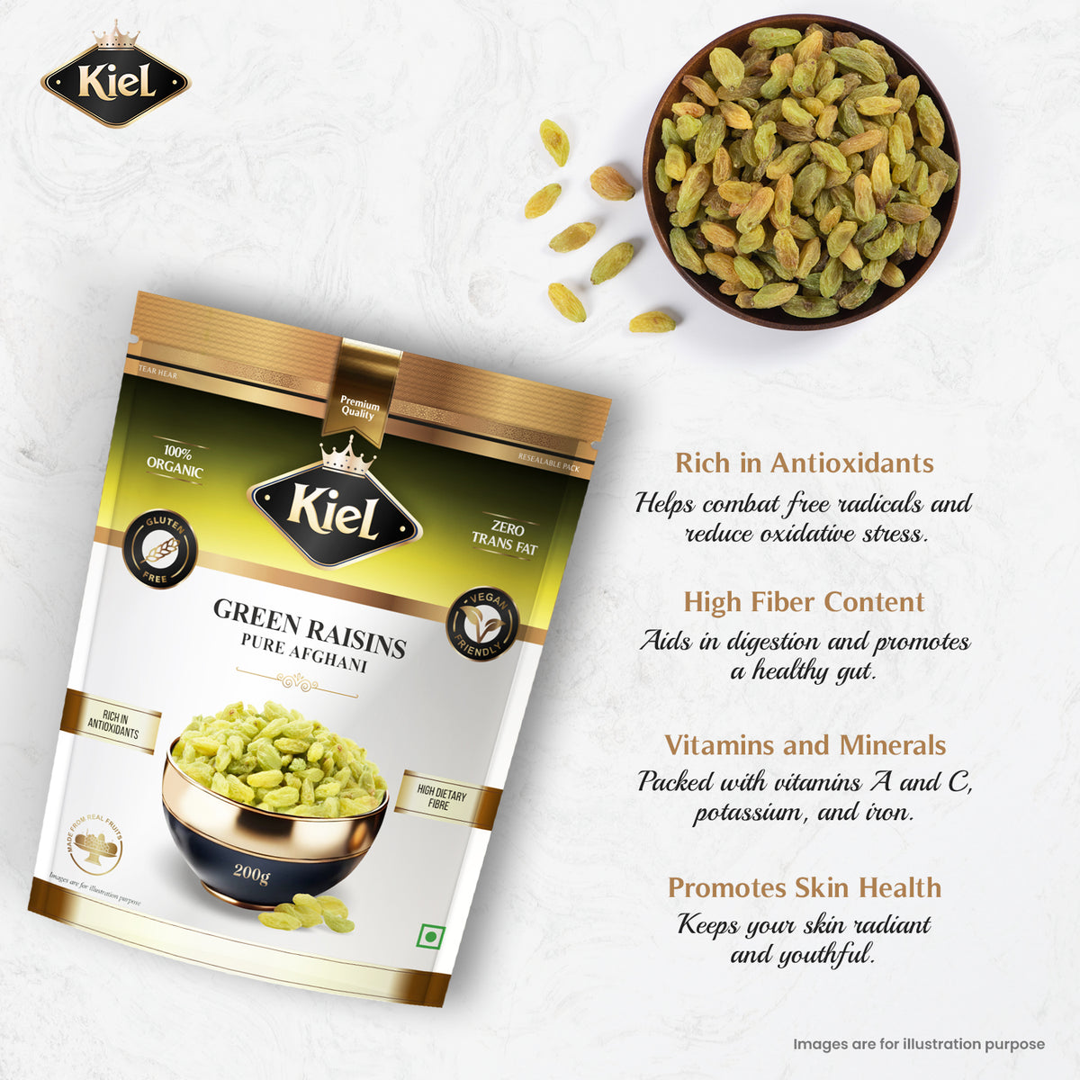 Inform when this item available Kiel Pure Green Afghani Raisins (Seedless) Pack of 200 Gram